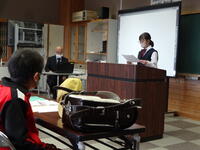 ついての作文を発表し、続いて、生徒会役員がスライドを用いて学校行事や委員会活動