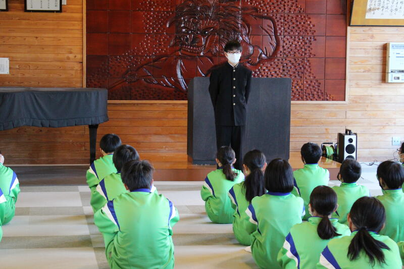 1月13日、全校集会が行われました。この全校集会をもって新生徒会役員にバトンタッチとなります。3学期のスタートとして、レクリエーションを行いました。全校生徒が交流し、楽しく活動することができました。
