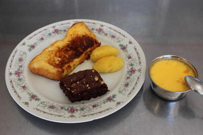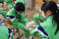 家庭科の授業の一環として、3年生が幼児のおやつ作りを行いました。幼児にとっておやつは食事の補助であり、楽しみでもあるということを学んだ上で、グループごとにメニューを決め、協力して活動していました。フレンチトースト、ブラウニー、カスタードプリン、スイートポテトのどれもが美味しくでき、みんなで楽しく試食しました。