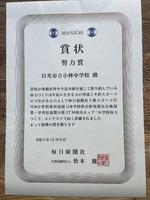 文部科学省の実施要領に従って行われる新体力テストの記録をもとに「中学校体力つくり」コンテストが毎年行われています。第37回コンテストでは、全国から4072校がエントリーし、約300校が選出されました。本校はさらにその中の36校に与えられた努力賞に輝きました。