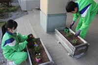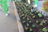 11月21日(木)の放課後に、地域コーディネーター齋藤さんの御協力のもと、技術室前と職員室前の花の苗植えを行いました。色とりどりのビオラ、パンジー、そして葉ぼたんを、生徒は大きさのバランスを考えたり、色合いのコントラストを工夫したりしながら、意欲的に活動していました。