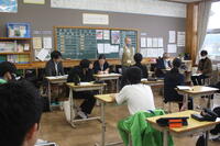 3年生の「総合的な学習の時間」で、「地域の未来を考える」のタイトルで学習してきました。その集大成として、日光市役所総合政策課の方々をお呼びし、政策の提言を行いました。単元が始まる際に市役所の方から教えていただいた日光市の課題「人口減少」について、グループごとに「伝統芸能」「交通」「労働力」「お店」の4つの視点から解決策を考えました。「理路整然と説明できていた」「アンケートをとり、しっかりと調査していた」「中学生が市について真剣に考えていることが嬉しい」などのご講評をいただきました。日光市役所の皆様、授業に御参加頂きありがとうございました。
