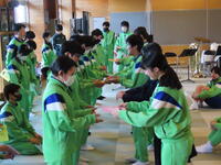 生徒会役員が中心となって企画した、中学校生活3年間を振り返るレクリエーションなどを行い、全校生徒が仲良く交流することができました。音楽部の演奏では、1年生を中心に一生懸命練習した2曲を披露し、3年生への感謝の想いを音楽を通して伝えることができました。終始、和やかな雰囲気の中、有意義な時間を過ごすことができました。