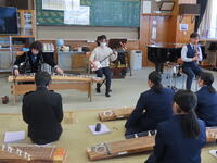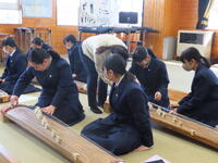 音楽の授業の一環として、1年生を対象に邦楽スクールコンサートを実施しました。3人の先生方による琴、尺八、三味線の演奏鑑賞や琴の演奏体験、最後は全員で「荒城の月」を合奏し、とても充実した2時間でした。日本の伝統音楽に親しむ貴重な機会になりました。今後の授業に生かしていきましょう。