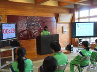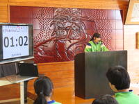 1月29日(木)清掃をカットして、全校集会を実施しました。今回は、国語科主催で、国語の時間に各学年ビブリオバトル(書評合戦)を実施し、学年代表と職員3名が発表しました。ビブリオバトルとは、自分のおすすめの本を紹介し合い、紹介が終わった後、一番読みたい本に投票し、票が多く集めた本が「チャンプ本」となる書評合戦です。