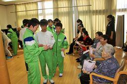 福祉教育の一環として、1年生がグループホーム塩野室ハウス・笑顔の家に行き、高齢者の方々と触れ合いました。