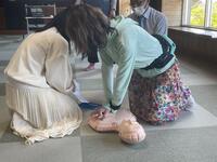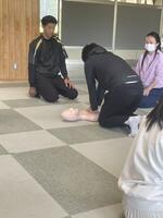 5月24日(水)に職員研修会を行いました。水曜日の生徒下校後は会議や職員研修会、自己研修を行っています。この日は万が一の事故に備え、全職員で生徒の命を守るため、心肺蘇生法とAEDの使用法の確認を行いました。