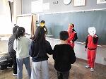 集会では、6年生が扮する鬼たちが各教室を回りました。