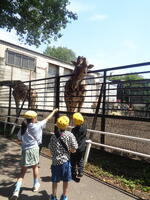 「3回当たったら負けゲームをしようよ」と提案した友達に賛成し、クラス全員でチーム対抗の水鉄砲を楽しんだり、「だれの水鉄砲が遠くまでとぶかな」と対決したり、工夫して水遊びをする姿が見られました。夏休みにぜひご家庭でもやってみてください。