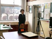 3学期始業式の様子です。校長室から各教室へ、タブレット端末を通して配信型で行いました。