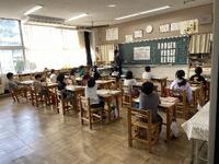 大室小学校の栄養教諭の先生に、食について御指導いただきました。今日は5年生と6年生です。