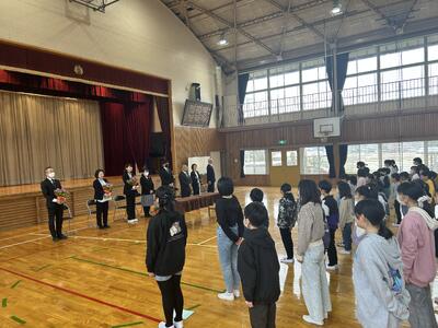 吹奏楽部は「上を向いて歩こう」と「パプリカ」の2曲を演奏しました。少人数ですが、一人一人の力強い音色がハーモニーとなってオープニングを盛り上げました。
