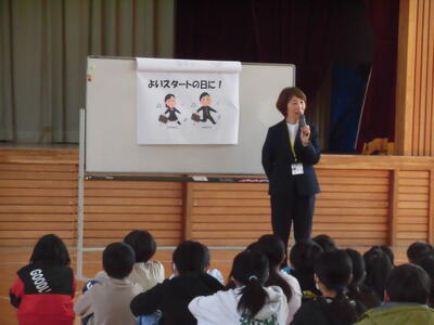 校長先生からは、「いじめ防止」、担当者からは「ふわふわ言葉をたくさん使おう」という話がありました。
