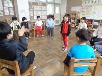仲間づくりゲームは、じゃんけんで負けたら、相手の良い所を褒めるという内容でした。子どもたちは、じゃんけんと褒めることを楽しんでいました。褒められた子どもは、嬉しそうでした。