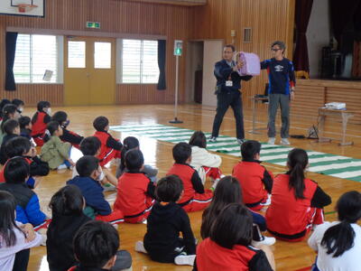 また、ワンワンショーでは、3人の児童が舞台に上がり、ショーのお手伝いをしました。
