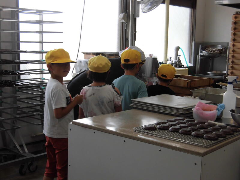 丸彦製菓(日光おかき工房)では、おせんべいとおかきの違いを教わったりできたてのおせんべいを試食させてもらったりしました。