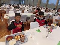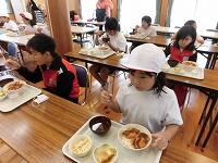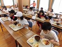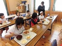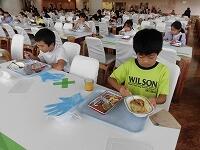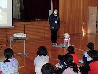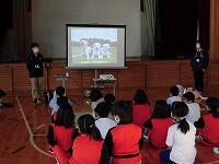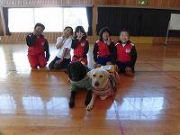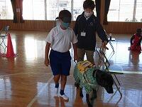 講演では,視覚障害について,盲導犬の一生や基本訓練,盲導犬の仕事等の説明をしていただきました。また,子ども達全員がアイマスクをつけての体験歩行をさせてもらいました。今日の体験学習を福祉や人権の学習にも生かしたいと思います。