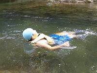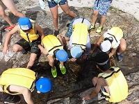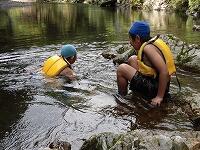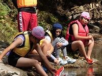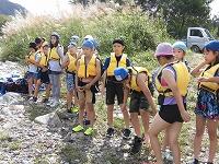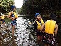 ライフジャケットに身を包みみんなで川遊びを体験しました。