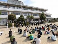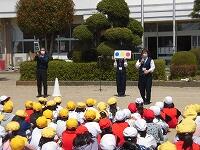 新一年生が入学して,登校班で登校しています。また,ゴールデンウイークも控えていますので,今まで以上に交通安全,防犯に注意して生活できるように,交通安全防犯教室が行われました。
