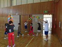 新入生を迎える会では,一年生の自己紹介と,児童会からの一年生へのプレゼント(図書室利用の時に使う下敷き)そして,あおぞら班ごとの外遊びをしました。