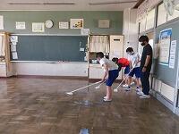 6時間目には、6年生が各教室をワックスがけしてくれ、床がとってもピカピカ