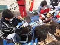 花が高い位置で見栄えが良いように土を足しました。1年生も苗のポットの外し方を聞いて