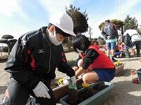 体育美化委員会によるパンジー苗植え作業