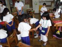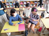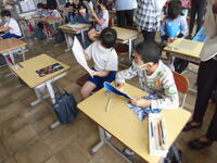 5年生が1年生に操作方法を教えにいきました。
