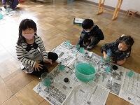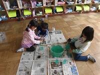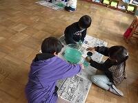 算数で「どちらがおおいかな?」の単元を学習しています。今日は、違う容器の中の水の量が、どちらがどれだけ多いのかをたしかめるために、「それぞれの容器に入っている水を同じコップに入れかえてみて、それを比べる。」という児童からでた意見を検証するために、実際に水をコップに移し替えて比べる学習をしました。グループで協力して取り組み、くらべ方を学ぶことができました。