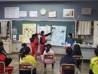 更に、自分たちの学びを2年生に伝えるために話す内容や順番を考えて、グループで練習し発表をしました。来年、初めて社会科を学習する2年生は、興味や関心をもって聞いてくれました。
