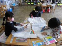 生活科で1年生がたこを作りました。作ったたこをあげてみると、木に絡まったり、うまく上がらなかったり・・・そこで昨年たこあげをした2年生の先輩にこつを聞いてみました。2年生にやり方を聞きながら、上手にあげられるようになりました。