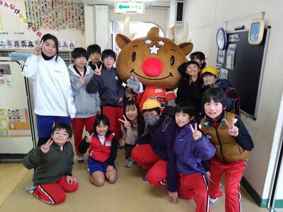 H.C.栃木日光アイスバックスのチームマスコットキャラクター「しかっち」が、小林小に来てくれました。