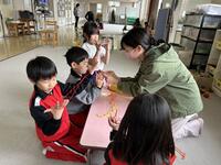 4名のボランティアの方に、けん玉、お手玉、あやとり、こまの4つの遊び方を教えていただき、楽しみました。ボランティアの方のお話をよく聞きながら、できなくても何度も挑戦することができました。
