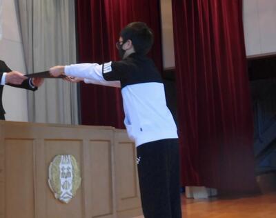 式には、在校生も参加しました。今日の欠席はゼロです。