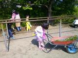 ブランコの下の地面がくぼんでいるので、砂を運び整えました。