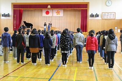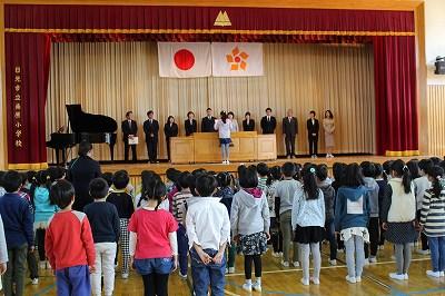 最後に全員で校歌を歌いました。元気な歌声が体育館中に響き渡りました。16名の先生方には,本当にお世話になりました。南原小学校のことを,児童達と過ごした日々を忘れず,南原PRIDEを胸に,新天地でもご活躍ください!!本当にありがとうございました。