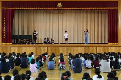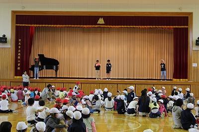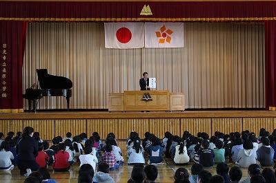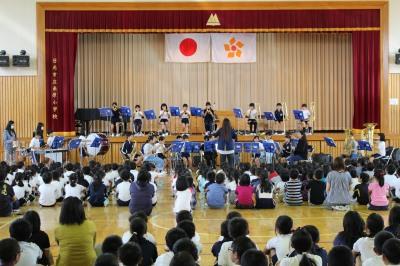日光市教育祭今市ブロック学校音楽祭が日光市今市文化会館大ホールで行われました。本校のブラスバンド部の児童も2番目に演奏しました。最初に「天空への挑戦」を演奏しました。難しい曲ですが、1学期から継続して練習に励み、上手に演奏することができました。続いてDA PUMPの「USA」を振り付きで披露しました。会場全体の手拍子をいただき楽しく演奏することができました。11月7日(水)に行われる南原祭でも演奏しますのでぜひお聞きください。