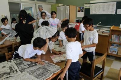 昼休みには,本の紹介の中にあった新聞紙でできる工作教室を図書室で開いてくれ,多くの児童が集まり一緒に工作を楽しみました。
