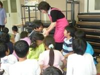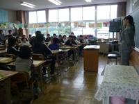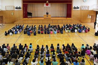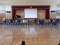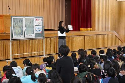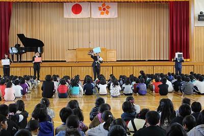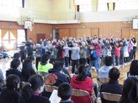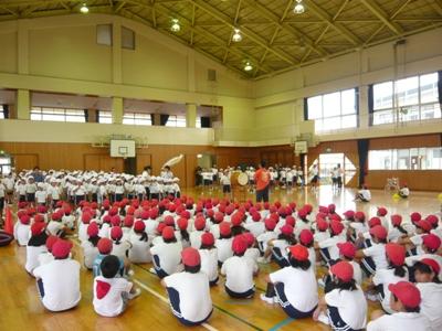 全体会の後,1・2年生は人形劇を,3~6年生は