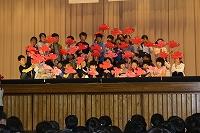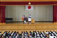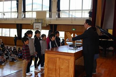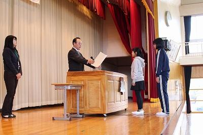 次に表彰伝達がありました。新体力テストや野球の大会の表彰でした。受賞された皆さん,おめでとうございます。