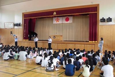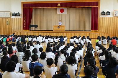 次に,校長先生からお話がありました。夏休みに取り組んでほしいことのお話でした。読書をしたり,様々なことを体験したり,たくさんの人と話したりと充実した夏休みにしてください!!