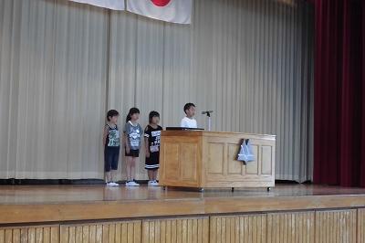 はじめに3年生の代表児童から発表がありました。1学期に頑張ったことを中心に堂々と発表することができました。