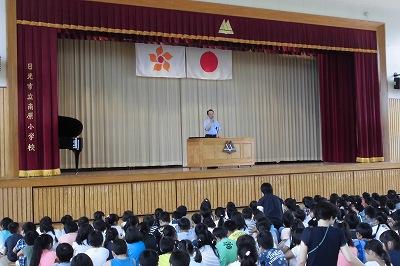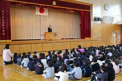 校長先生からは,5.6年生へのメッセージや凡亊徹底に