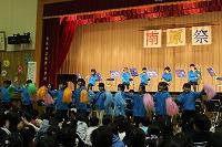 本校ブラスバンドの児童が、平成町の敬老祝賀会&納涼祭で演奏を行いました。普段練習している曲や演歌も演奏しました。今年は入ったばかりの低学年児童も曲に合わせtダンスを披露し、拍手をいただきました。平成町の皆さんの活気あるお祭りに感動しました。