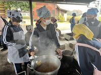 2組は、調理実習でゆで野菜のサラダを作りました。