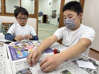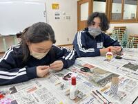 図工の時間に、はさみの練習をしました。みんな真剣です。