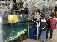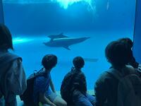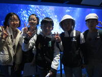 アクアワールド大洗水族館見学では班別に活動しました。雨のため、地元の幼稚園生、小学生が多く、大変混雑しました。