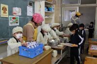 静かに給食の準備をしています。みんなで協力し合いながら準備を行っています。