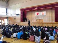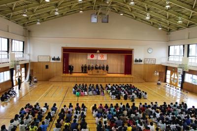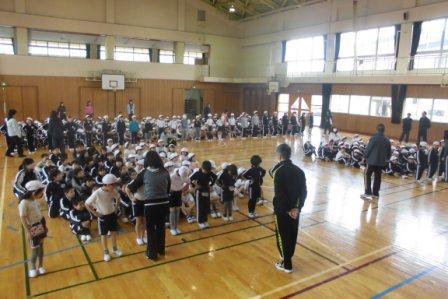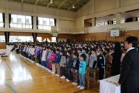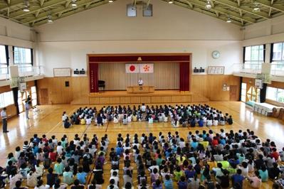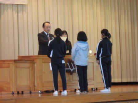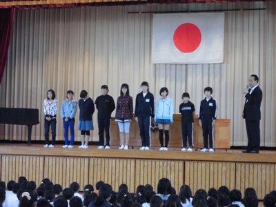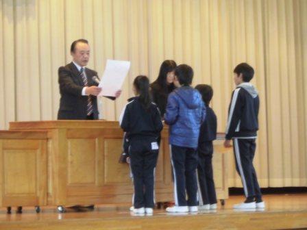 まずは,模範児童や陸上大会などの表彰伝達でした。
