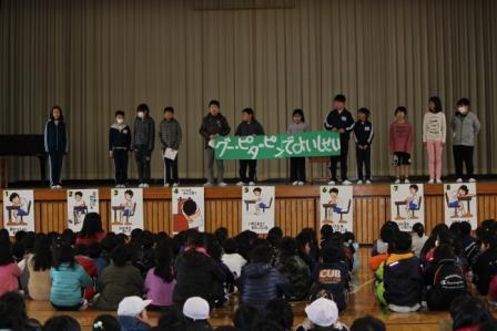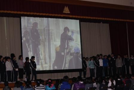 感謝の集いでは,本校児童が毎日安全に登下校できるように